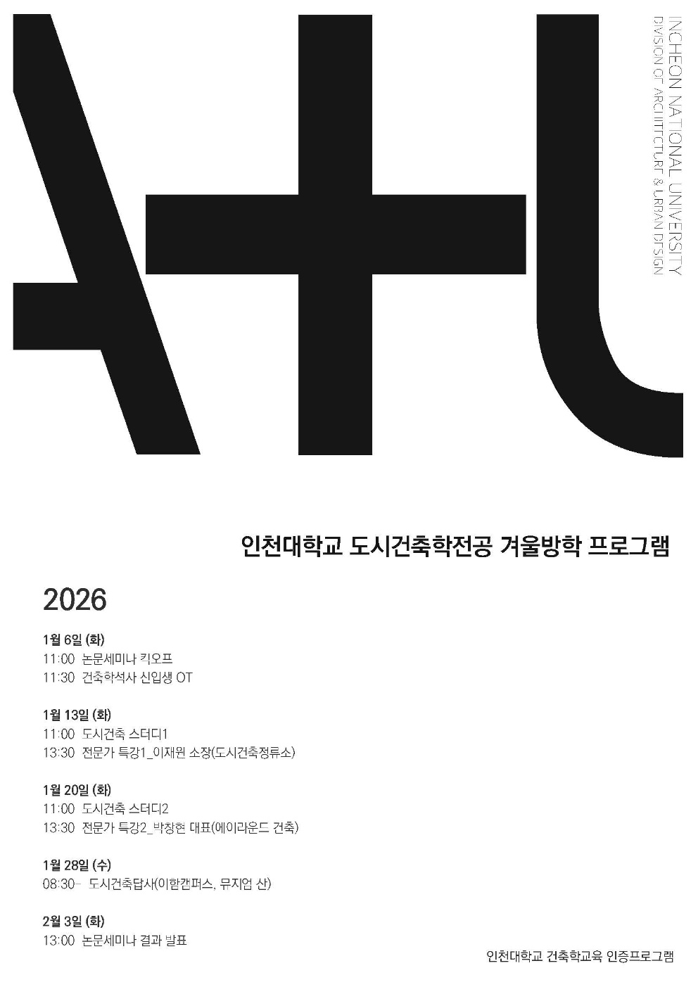[도시건축학전공] 겨울방학 프로그램 특강 안내