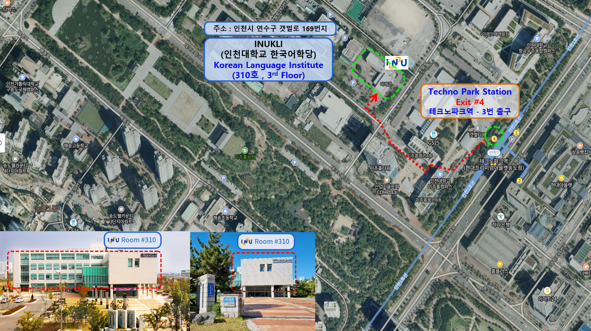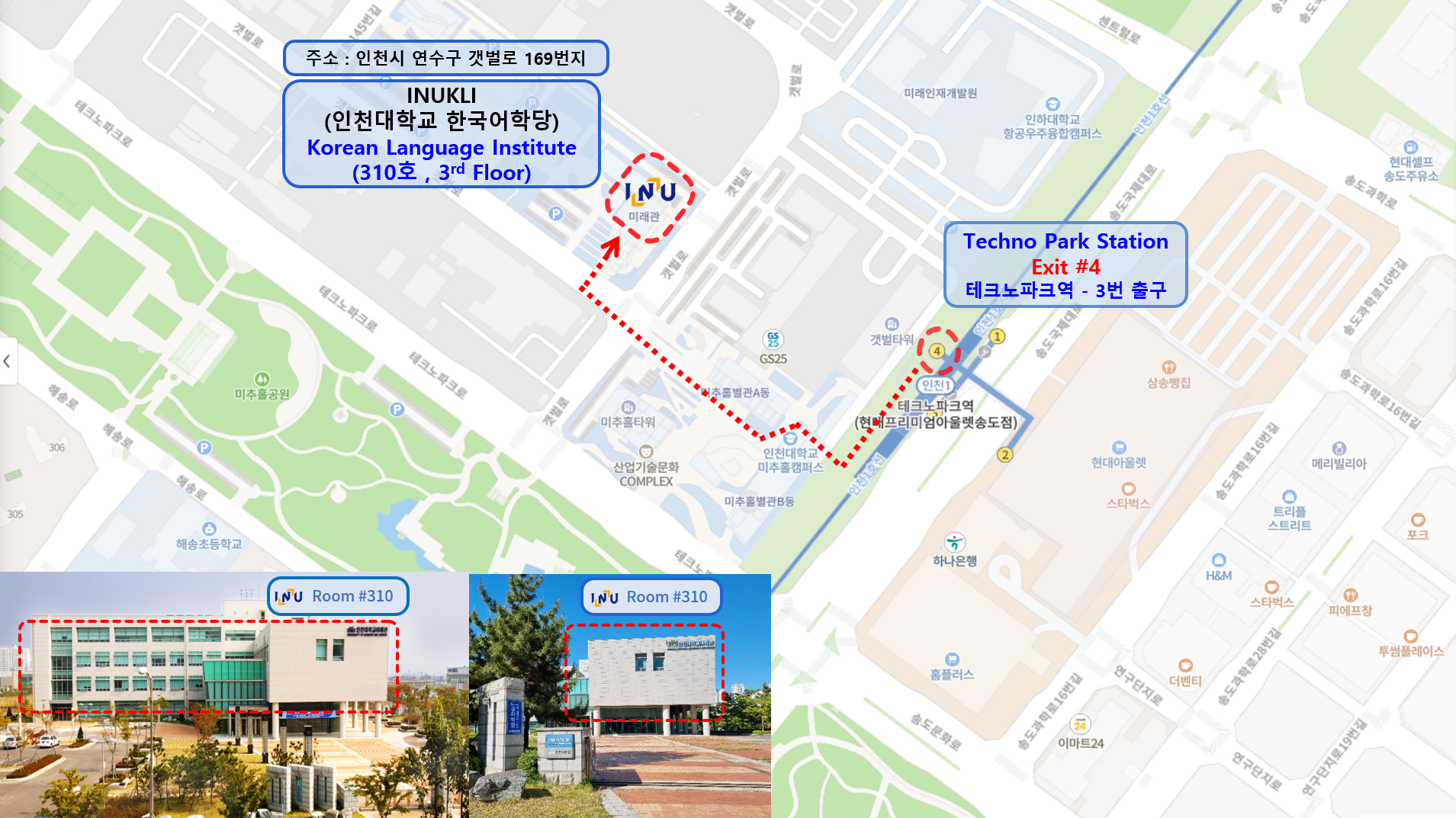 - Subway 지하철 : 테크노파크역 4번 출구, 도보 3분 : Technopark Station Exit # 4, 3 Mins walk to INUKLI